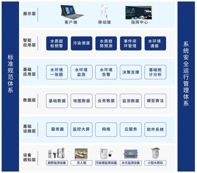 從現(xiàn)場(chǎng)端和系統(tǒng)平臺(tái)端搭建覆蓋水環(huán)境的源-網(wǎng)-廠-河-流域在線感知網(wǎng)絡(luò);
